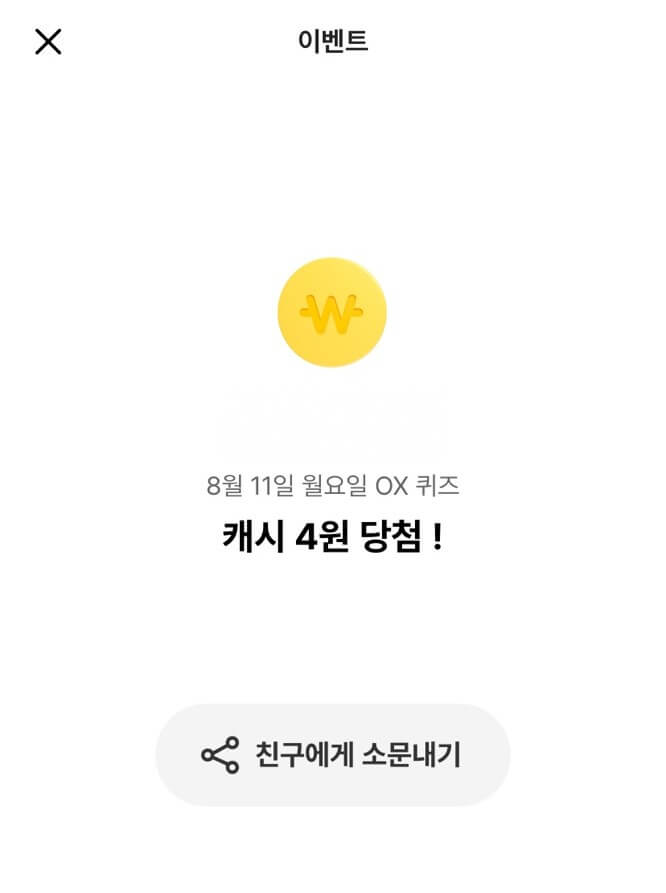 - OX 퀴즈 (카카오뱅크) : 정답 시 즉시 3원 지급